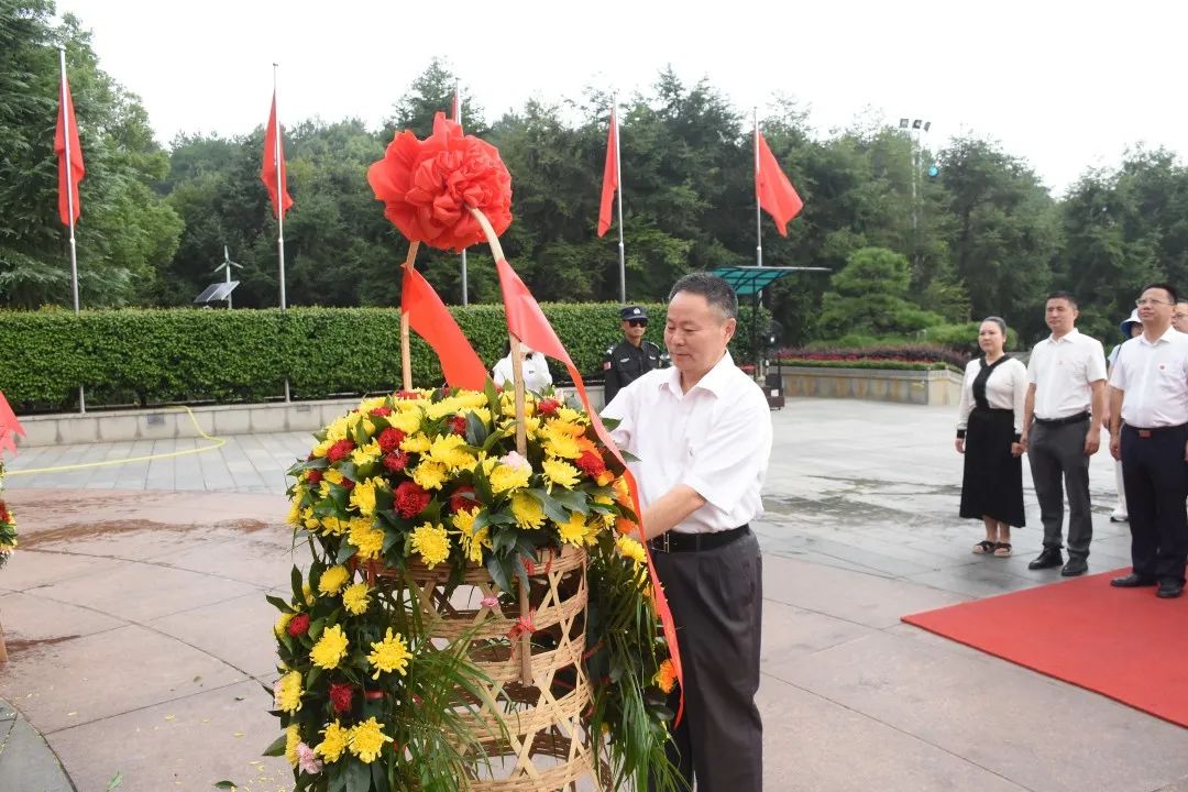 蓝天白云下的毛泽东同志铜像高大雄伟,商会代表团30 余人缓步来到铜像前,静静肃立。随后,全体人员向毛泽东同志铜像敬献花篮,深深三鞠躬,并绕行铜像一周注目瞻仰,表达对毛主席的崇高敬意和无限追思。