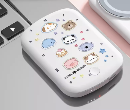 充电宝图案印刷有多种,如:丝印、移印、转印、UV印刷。其中丝印、移印只能印刷单色或双色的间单图案,复杂的图案渐变色Logo等,无法做到。UV印刷不但可以做到多色彩印,还有立体浮雕工艺,使图案有凹凸手感,并且具有不掉色,防刮耐磨功能。