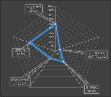 第三个是价值链整合能力。在U9 cloud平台的基础上,我们连接了APS、PLM、MES等系统的应用,实现了业务的线上化、信息化和部分智能化。但综合的价值整合能力,目前还处于比较低的水平,因此,此项指标只能达到20%左右。