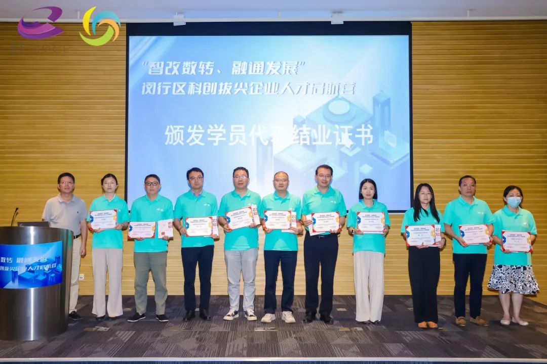 2023年8月10日,在闵行区委组织部、闵行区科委、闵行区就促中心的指导下,由闵行区科技企业联合会、上海紫竹创业孵化器有限公司共同主办的首期“智改数转、融通发展”闵行区科创拔尖企业人才启航营结营仪式暨颁奖典礼成功举行。闵行区科委副主任韩晓非、吴泾镇党委副书记吴音英、闵行区科技企业联合会秘书长高春明、上海紫竹创业孵化器有限公司总经理丁嘉敏、紫竹创业学院执行副院长尹晓明等领导出席了本次仪式。来自联合会以及紫竹创业孵化器的优秀企业家代表、合作伙伴、创业导师及嘉宾等共计60余人参与了本次活动,一同回顾启航营精彩瞬间,展望企业发展美好未来。