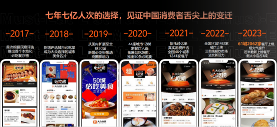 大众点评的“头部美食IP榜单”已经深耕领域7年,见证过七亿人次中国消费者舌尖上的变迁,其IP本身自带的信任度与流量已经成为平台独有的价值之一。
