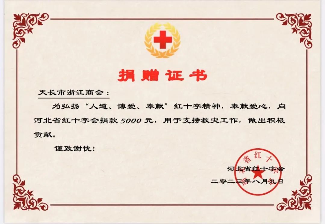 受台风“杜苏芮”影响,河北省部分地区遭受强降雨袭击,天长市浙江商会秉承一方有难八方支援的原则,于8月9日向河北省红十字会捐款5000元,希望能尽微薄之力,帮助灾区群众度过难关。
