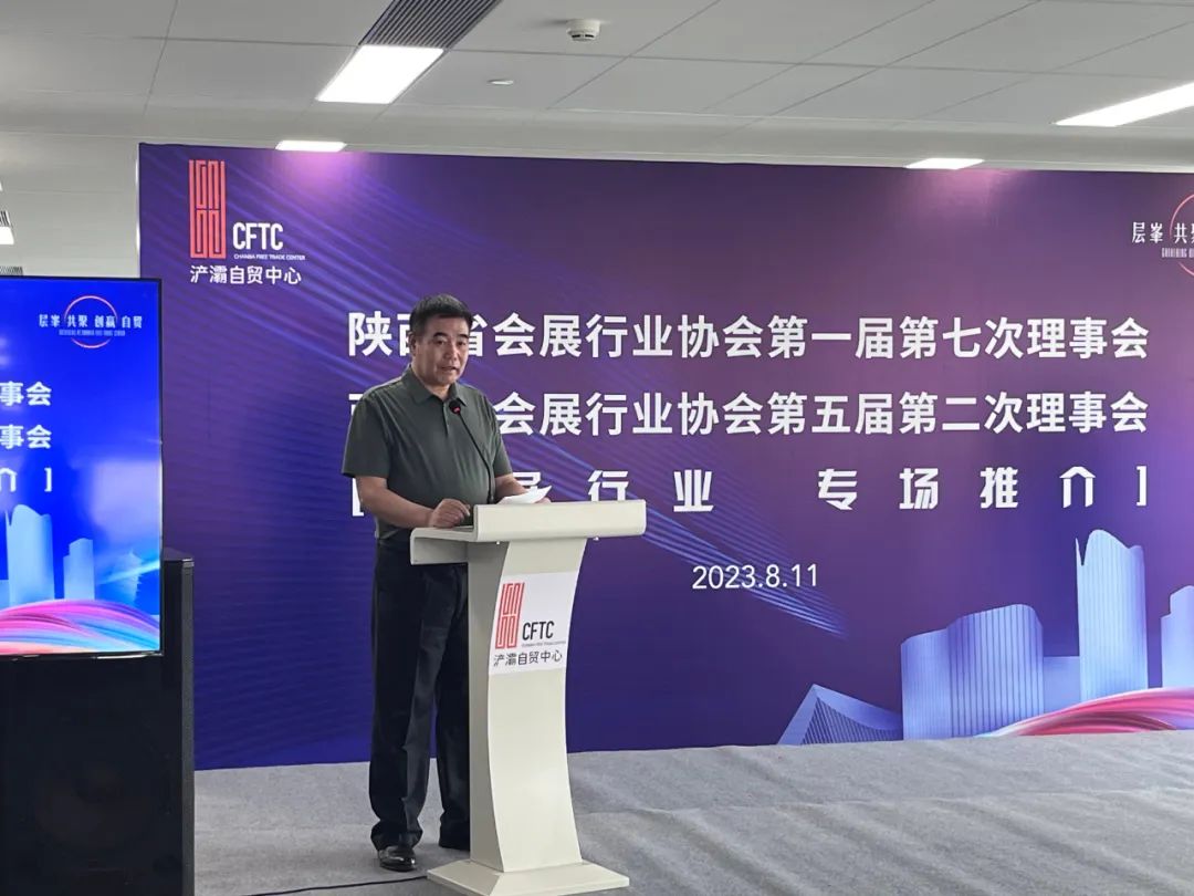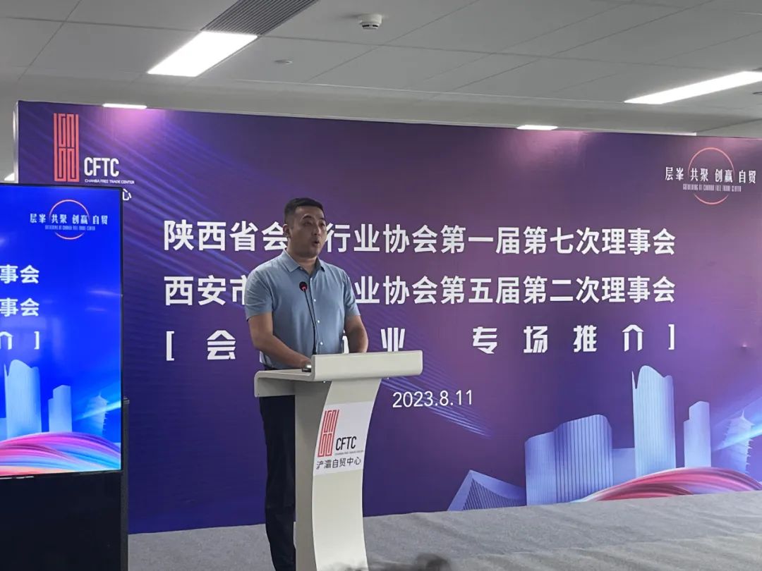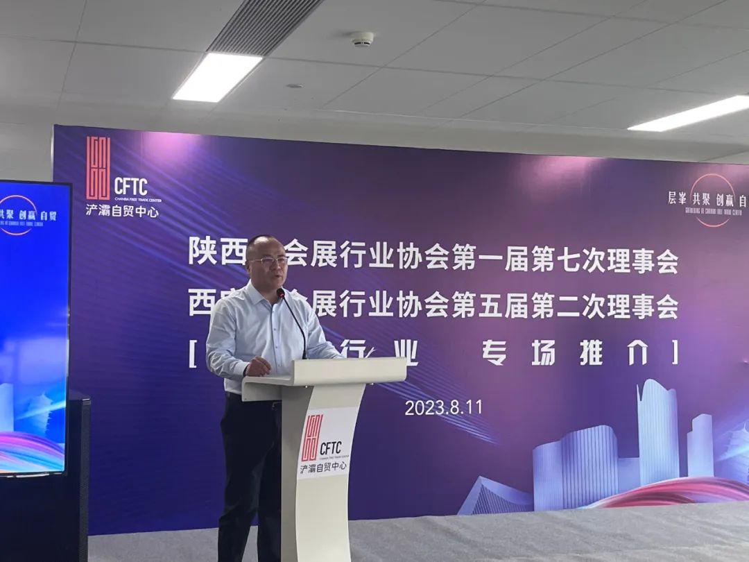 2023年8月11日下午,陕西省会展行业协会第一届七次理事会与西安市会展行业协会第五届二次理事会暨浐灞自贸中心及会展办公聚集区推介活动共同在浐灞自贸中心A座顺利召开。陕西省会展行业协会会长马建明,陕西省会展行业协会执行会长张锁良,西安市会展行业协会会长贾欣,西安世园物业管理有限责任公司总经理张新道,西安世园国际会展管理集团有限公司副总经理屈洪涛,西安世园酒店管理集团有限公司副总经理朱珊珊,西安世园国际会展管理集团有限公司高级经理霍研等嘉宾出席,省市展协理事、秘书处人员以及浐灞生态区有关负责人参加。
