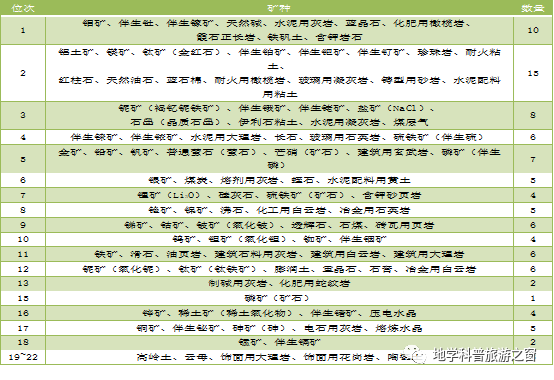 根据2019年全国矿产资源储量资料,河南保有矿产资源储量位居全国首位的有10种,居前三位的有33种,居前五位的有46种,居前十位的有70种(详见下表)。