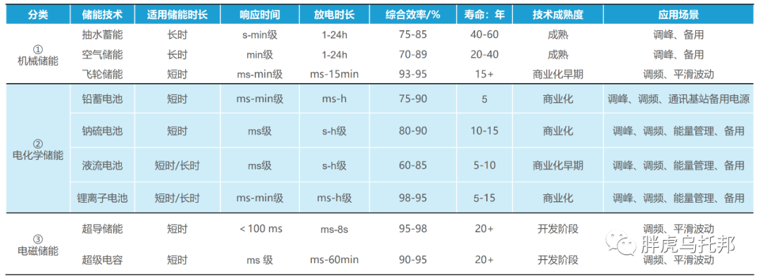 不同储能方式对比