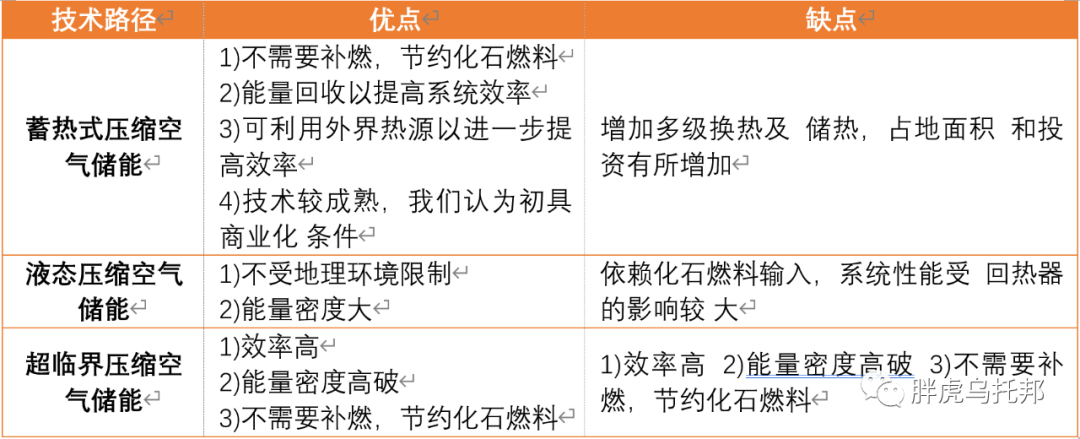 压缩空气储能,有点类似抽水储能,在存储时,消耗电能,压缩空气。在释放电能时,释放压缩空气,推动汽轮机发电。它是一种能够实现大容量和长时间电能存储的技术。目前最主要的新型压缩空气储能系统主要有三个新的技术路径:蓄热式压缩空气储能(TS-CAES)、液态压缩空气储能系统(LAES)、超临界压缩空气储能系统(SC-CAES)。三种不同的技术路径优劣势对比如下: