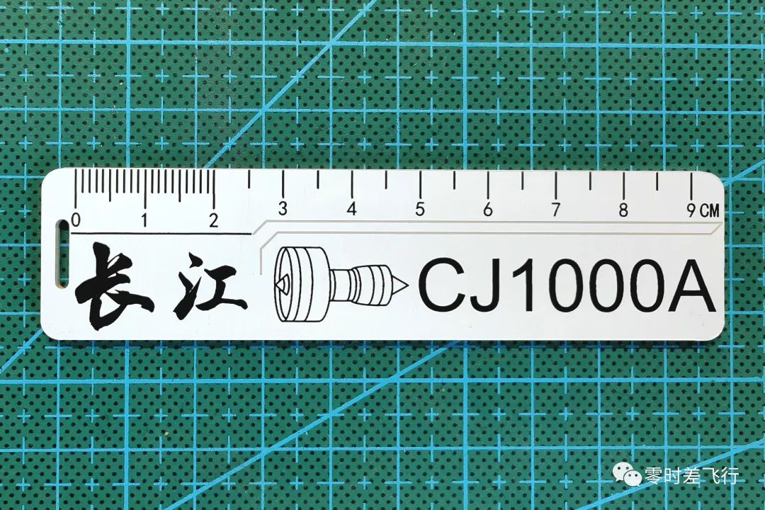 设计了一把书签尺,上有“长江”、“CJ1000A”等字样,以及自行绘制的CJ1000A发动机轮廓简图,用于纪念我国国产大涵道比涡扇发动机CJ1000A(即长江1000A)。