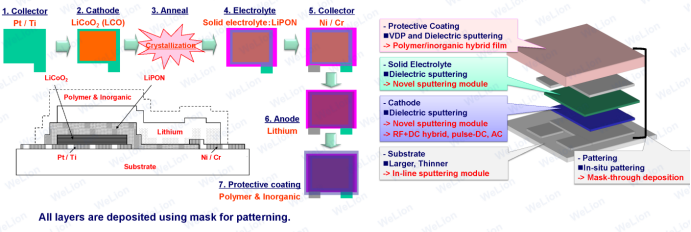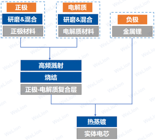 对于固态电池,其生产工艺需要在电极、电解质、界面工程及封装技术等方面进行突破,生产工艺性的优化提升是实现固态电池工程化和商用应用的重要组成部分。与传统液态锂离子电池相比,固态电池的前段工序基本与液态锂离子电池相同,中、后段工序上,固态电池需要加压或者烧结,不需要注液化成。固态电池可以分为聚合物固态电池、硫化物固态电池、氧化物固态电池及薄膜固态电池等不同的电池体系。整个固态电池的生产流程中,电解质成膜工艺是关键工艺。不同的工艺会影响固体电解质膜的厚度和离子电导率,固体电解质膜过厚会降低全固态电池的质量能量密度和体积能量密度,同时也会提高电池的内阻。相反,固体电解质膜过薄机械性能会变差,有可能引起短路。通过几十年的研究,在材料开发方面,不同类型的固态电解质(聚合物、氧化物、硫化物等)已经能够被成功地合成制备出来。电解质成膜工艺作为固态电池的核心工艺,可分为干法工艺与湿法工艺两大类。除干法与湿法两种工艺外,还可以通过化学气相沉积、物理气相沉积、电化学气相沉积和真空溅射的气相法制备固体电解质膜。但是气相方法的制备成本较高,只适用于薄膜固态电池。对于聚合物固态电池制备,均使用涂布的方法制备复合聚合物固体电解质正极层和聚合物固体电解质中间层,层压为聚合物固态电池。电极片与现有的液态电池制备方式类似,兼容现有产线。以亚琛工业大学研究机构PEM的聚合物固态电池制备工艺为例,正极和固态电池电解质材料的制备平行进行,通过高温熔化和返混挤出的过程形成正极和电解质浆料。两种浆料通过一起挤出的方式,分别叠加在正极集流体材料上。之后,再将金属锂压制成浆料后涂布在电解质材料的表面,形成集流体-正极材料-固态电解质-锂负极的混合多层电芯。最后,通过辊压法,把多层电芯压实。将制备好的电芯裁剪成固定尺寸,依照不同需求,将电芯依照串并联的方式叠放在一起。之后,对叠放好的电芯进行压实和封装,经过化成和老化工序,制作完成。然后,对电池进行测试和评级。对于聚合物固态电池生产工艺,其特点在于,通过干法和湿法工艺均可制备复合固态正极和聚合物电解质层,电池组装通过电极与电解质间的卷对卷复合实现;干法和湿法都非常成熟,都易于制备大电芯;易于制备出双极内串电芯。但是聚合物固态电池制备工艺也存在一定问题,例如成膜均一性难以控制;难以兼容高电压正极材料,导致能量密度不高;受醚类聚合物电解质材料限制,电池往往在高温下才能工作等。对于硫化物固态电池干法工艺,其技术优势包括节省去溶剂工艺制备成本及节约制备周期;无其他物质(溶剂)对电解质的影响;干法电池性能更稳定。但硫化物固态电池干法工艺也存在技术劣势,如制备大容量电池困难;电解质层厚度较厚,阻抗较高;粉末压实需要较高平压压强(10t/cm2)等。对于氧化物固态电池制备,以德国RWTH PEM制备工艺为例。电池正极和固态电池电解质材料的制备通过球磨的方式分别进行;使用高频溅射法,将固态电池溅射到正极材料表面;将复合好的正极-电解质材料进行高温烧结;通过电子束蒸发法将负极分布到电解质材料上。以日本ULVAC的LIPON薄膜全固态电池为例,其LIPON非晶氧化物固态电解质,1992年由美国橡树岭实验室通过射频磁控溅射Li3PO4靶材制备。正极集流体、正极、LIPON、负极集流体、金属锂负极、外包装保护层均通过真空镀膜技术制备。当前固态电池已成为各国角逐的热点技术,固态电池所使用的固体电解质本身需要相对复杂的合成或处理工艺,固体电解质自身的性质及其和电极的理化相容性不但影响着电池材料体系在科学角度的构建,也影响着其工程化进程。固态电池未来需要继续提升电极和电解质材料的综合性能,设计新型集流体/电极/电解质复合结构,发展新型制造工艺和装备,逐步推进电池制造技术的提升。来源;锂电联盟会长