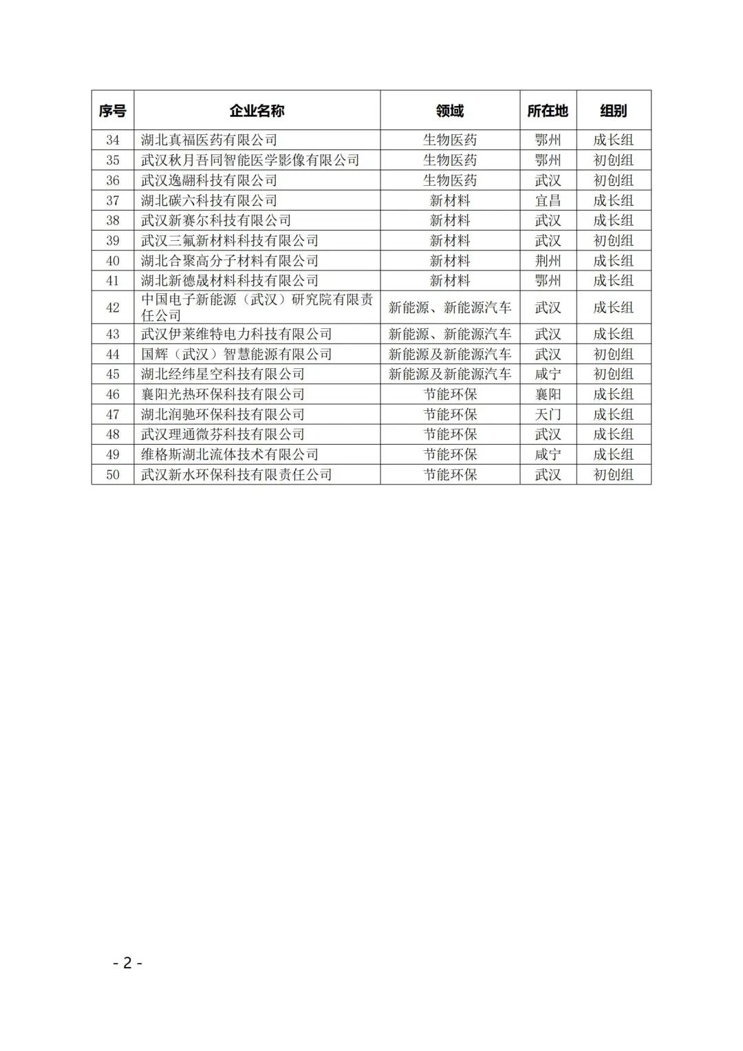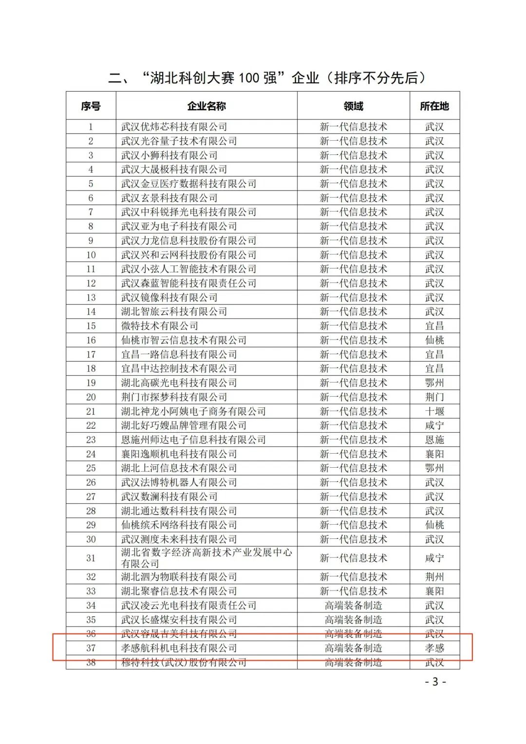 “湖北科创大赛100强”企业名单