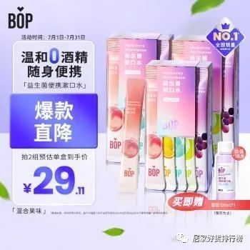 这款波普专研(bop)益生菌条装漱口水口气清新男女口腔清洁5口味混合装20条*3盒,轻松改善口腔问题,给你清新自信的呼吸。拥有青柠蒂花、奇异果玫红、薄荷唇膏、冰柠清凉、红葡萄口味五种选择,让你每天都能尝到不同的美好。强效去除口腔异味,阻断口臭源头,同时还能有效预防龋齿和口腔炎症。