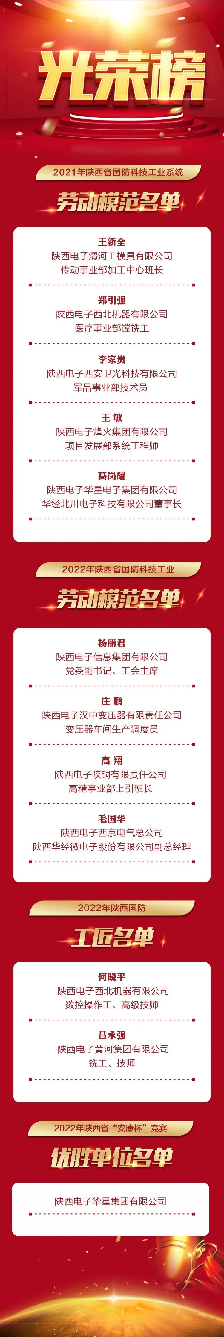 希望受表彰的先进集体和个人要珍惜荣誉、再接再厉,继续发挥榜样作用,再创无愧于新时代的新业绩。广大干部职工要以受表彰的劳模工匠为榜样,大力弘扬劳模精神、劳动精神、工匠精神,将个人理想奋斗与企业改革发展实践相结合,在劳动中体现人生价值。各企业要持续推进产业工人队伍建设改革,深入开展劳动竞赛,踔厉奋发、勇毅前行,为谱写陕西电子高质量发展新篇章再立新功。
