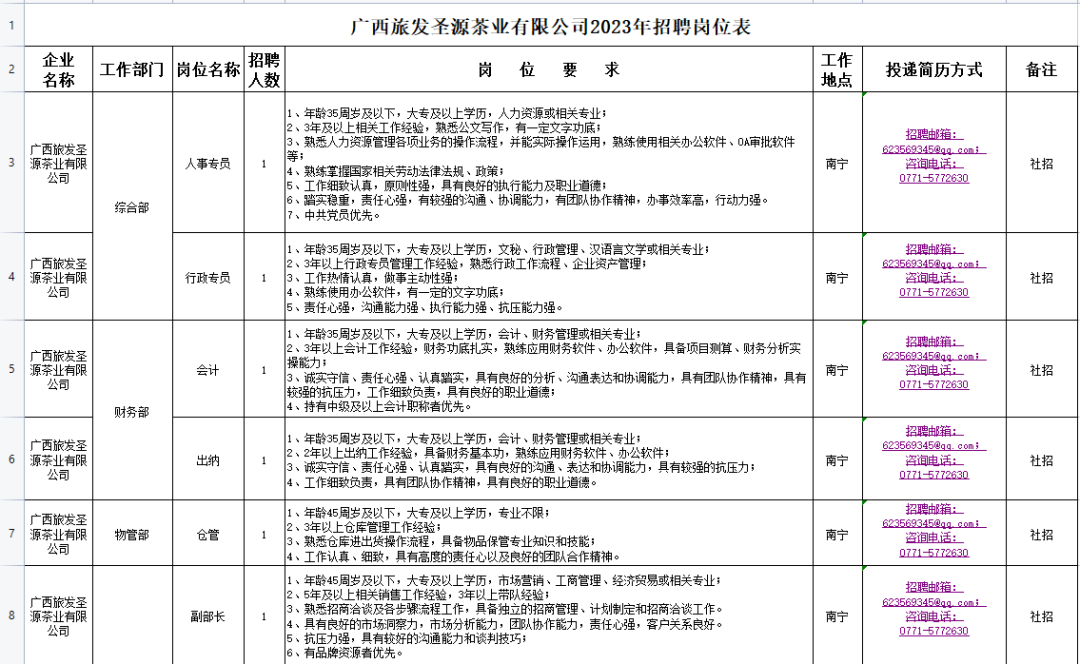 1.广西旅发圣源茶业有限公司2023年招聘岗位表