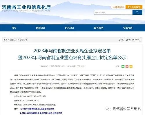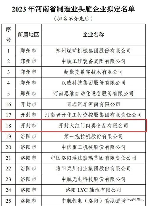 近期,河南省工业和信息化厅发布了《2023年河南省制造业头雁企业拟定名单暨2023年河南省制造业重点培育头雁企业拟定名单公示》,北京二商肉食集团所属开封大红门肉类食品有限公司被评为“2023年河南省制造业头雁企业”荣誉称号。