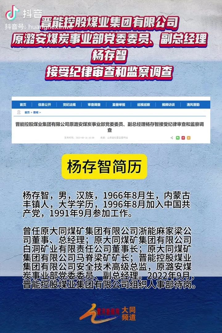 晋能控股煤业 杨存智 涉嫌严重违纪违法