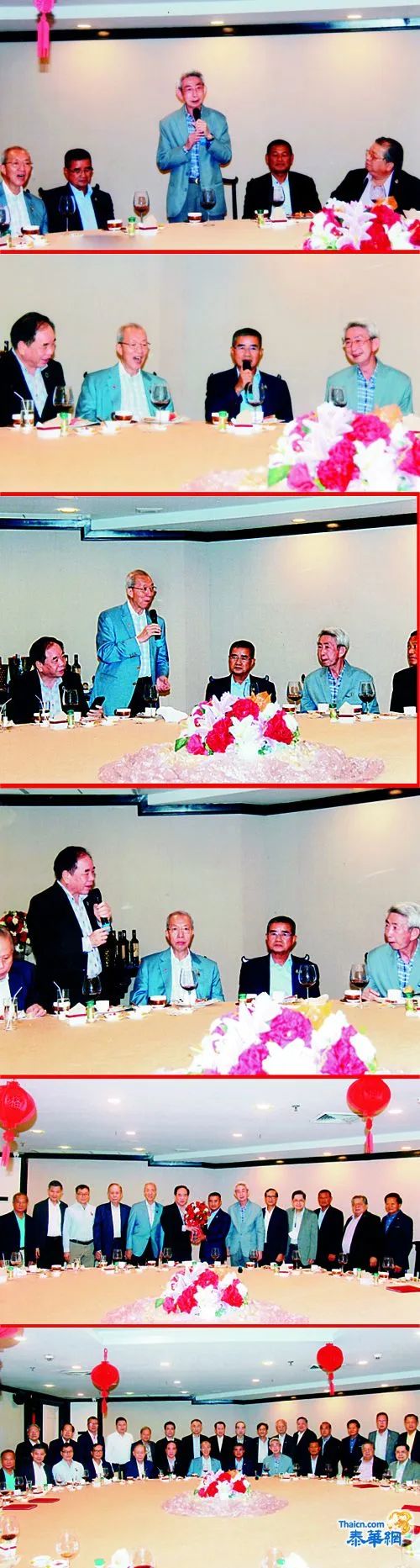 图一:永远荣誉理事长致欢迎词,左二枢密院大臣差霖猜上将,左一林齐锐,右二禄叻陆军上将,右一王庆招副理事长。图二:枢密院大臣差霖猜上将致谢词,右二作东者郑岳龙主席,左二林齐锐永远荣誉理事长,左一林俊然理事长。图三:永远荣誉理事长林齐锐致欢迎词。图四:理事长林俊然致欢迎词。图五:理事长林俊然恭向枢密院大臣差霖猜献花欢迎时与禄叻陆军上将,干乍纳陆军上将,首长郑岳龙,林齐锐,章德辉,刘树光,徐光辉,王庆招,刘汉明,张俊明等合影。图六:坐者长官,枢密院大臣差霖猜上将,禄叻陆军上将,干乍纳陆军上将,首长郑岳龙,林齐锐,林俊然,章德辉,徐光辉,刘树光,王庆招,后排首长黄畅亮,刘汉明,罗两德,许梓明,张俊明,李耀深,蔡培鑫,蔡蔚生,马逸群,林玮,许景杓,吴金成社长等合影。