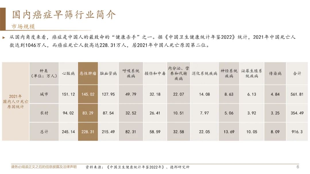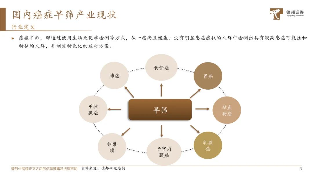 癌症早筛,即通过使用生物或化学检测等方式,从一些尚且健康、没有明显患癌症状的人群中检测出具有较高患癌可能性和特征的人群,并制定特色化的应对方案。