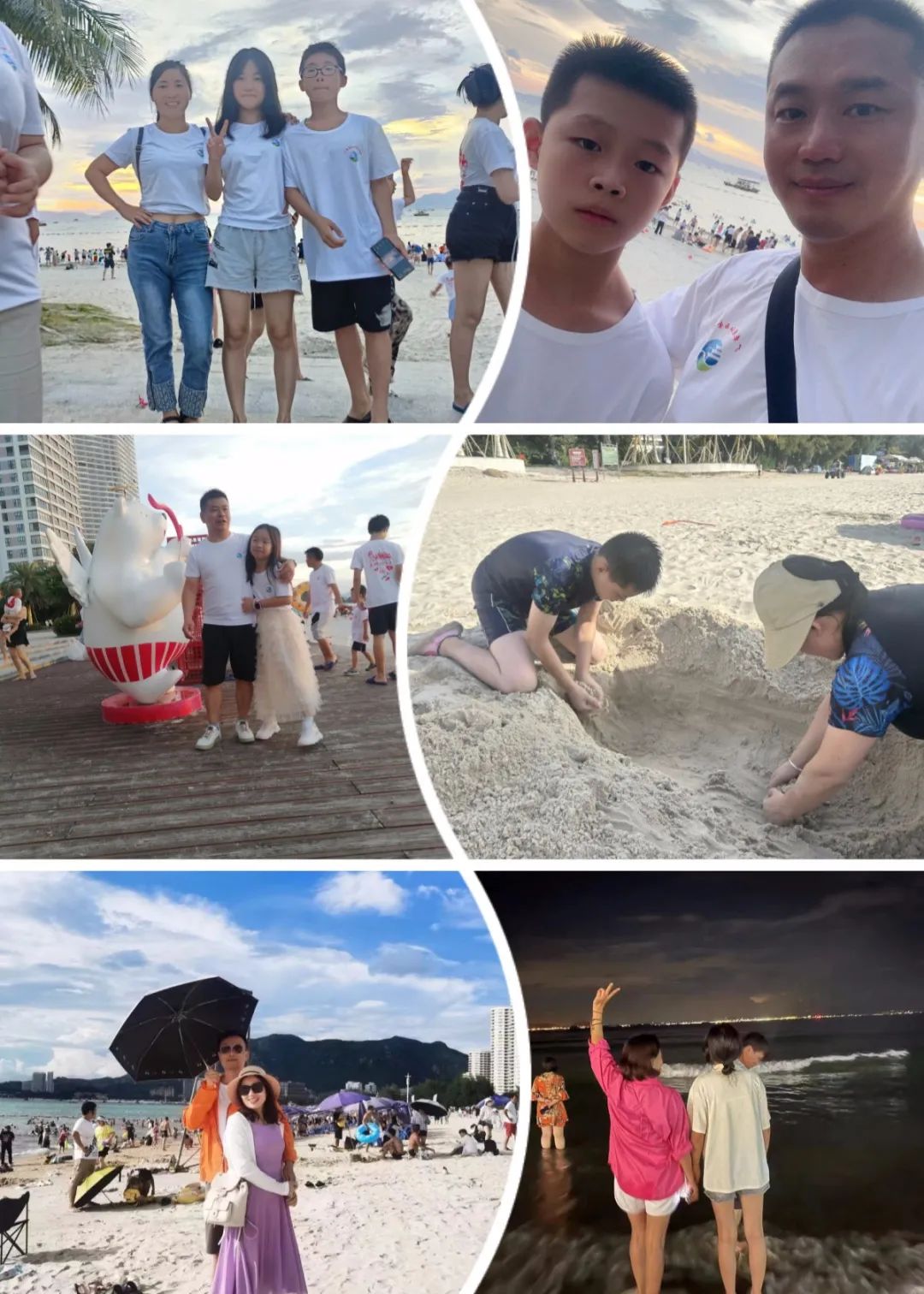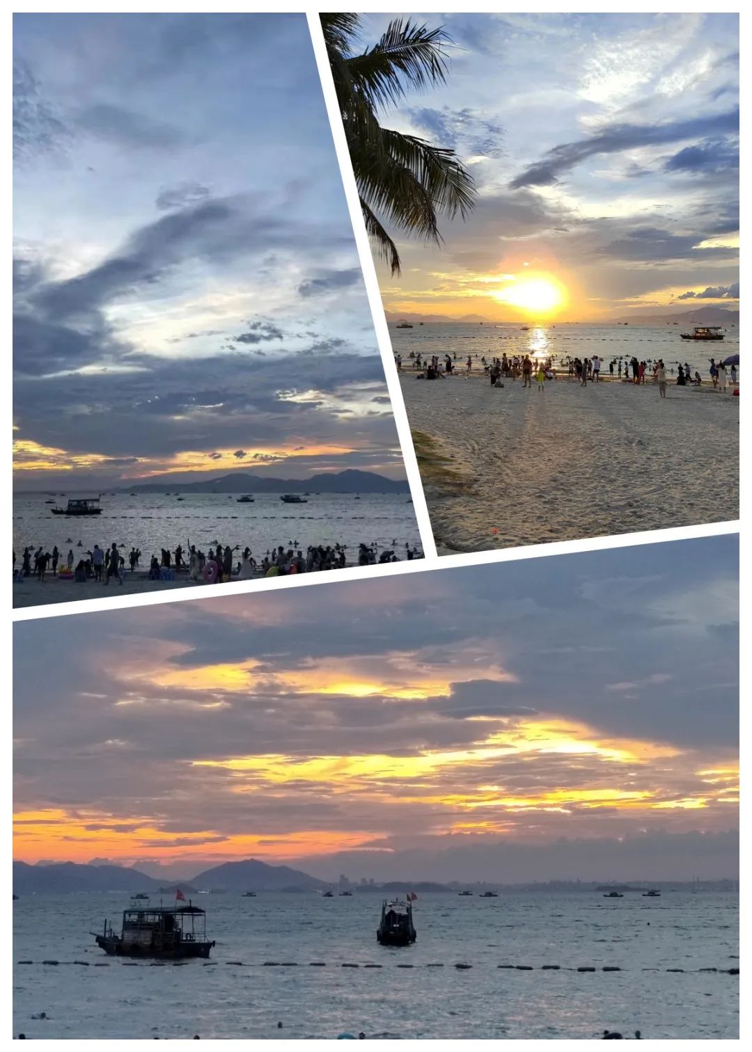 天公作美,阳光正好。我们不仅能看海浪冲上来的粼光,享受沙滩、海浪带给来的惬意,还能观赏到落日余晖和那一片金色的晚霞,海边的留影也定格了团结而温情的瞬间。