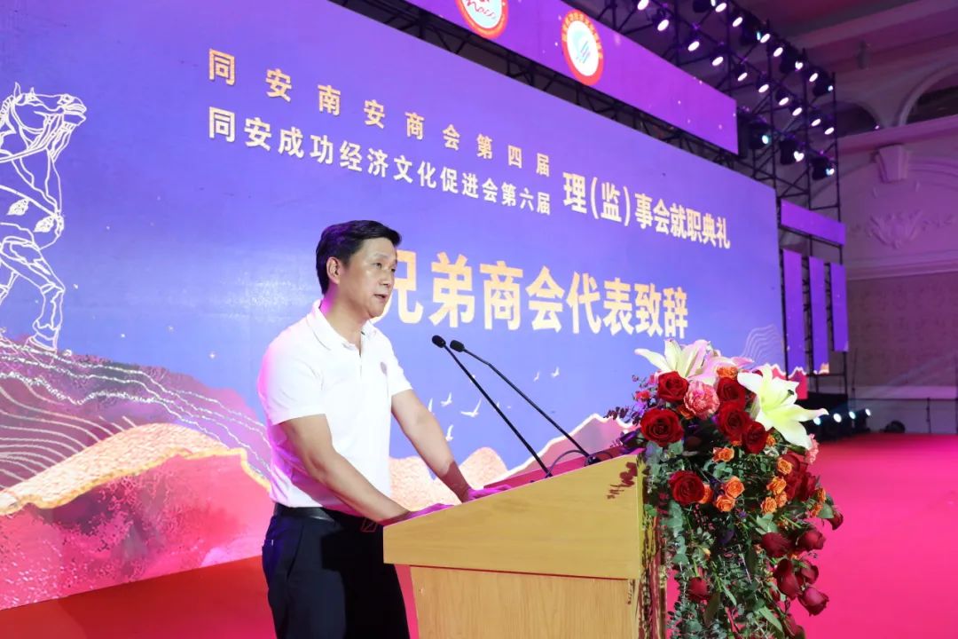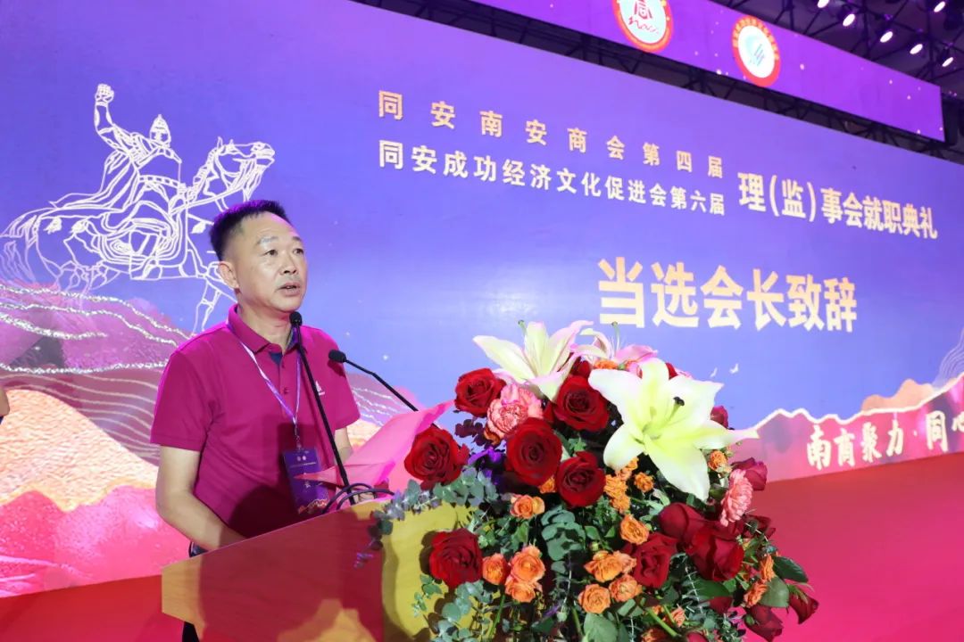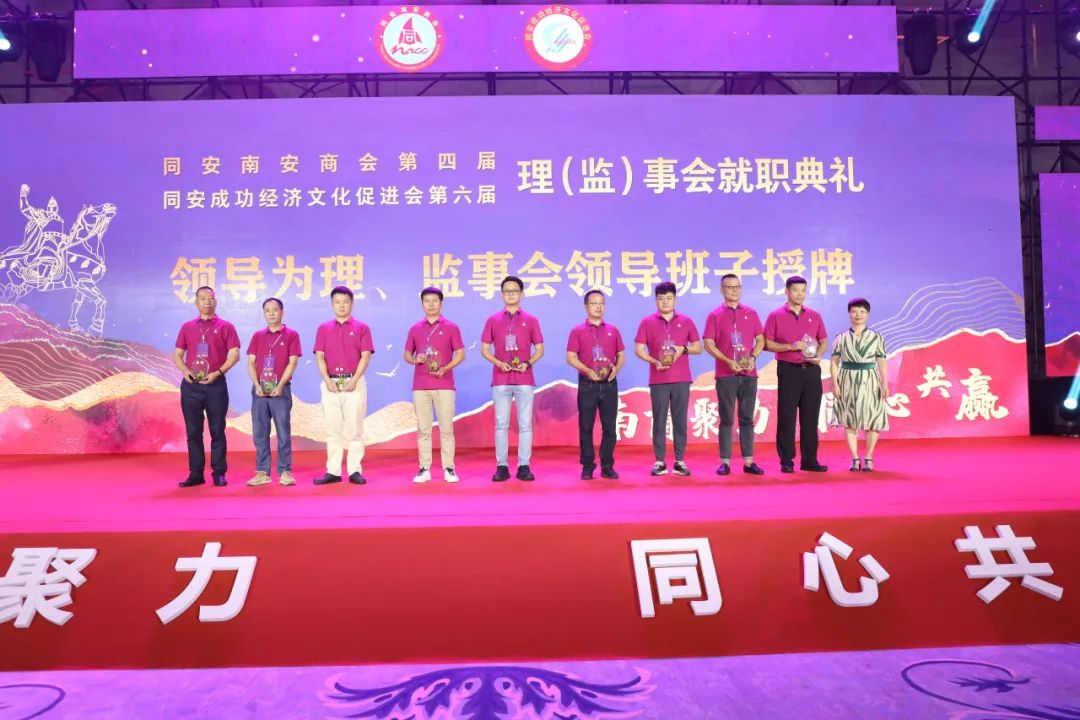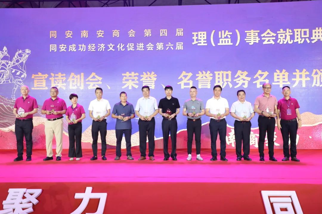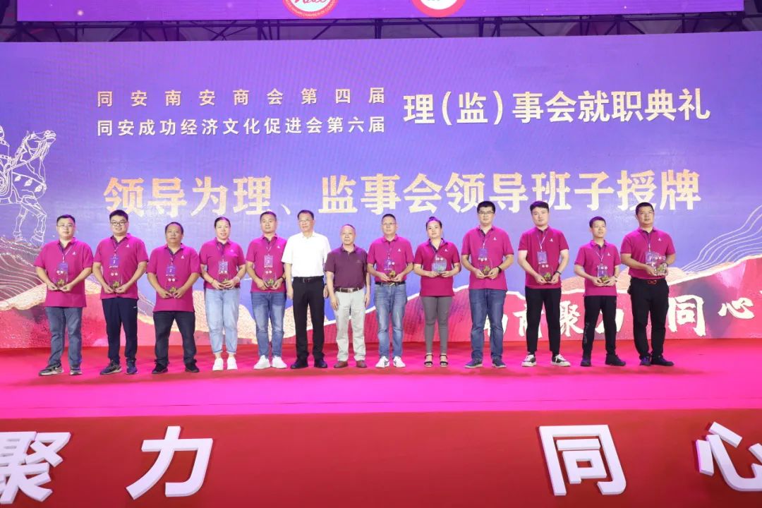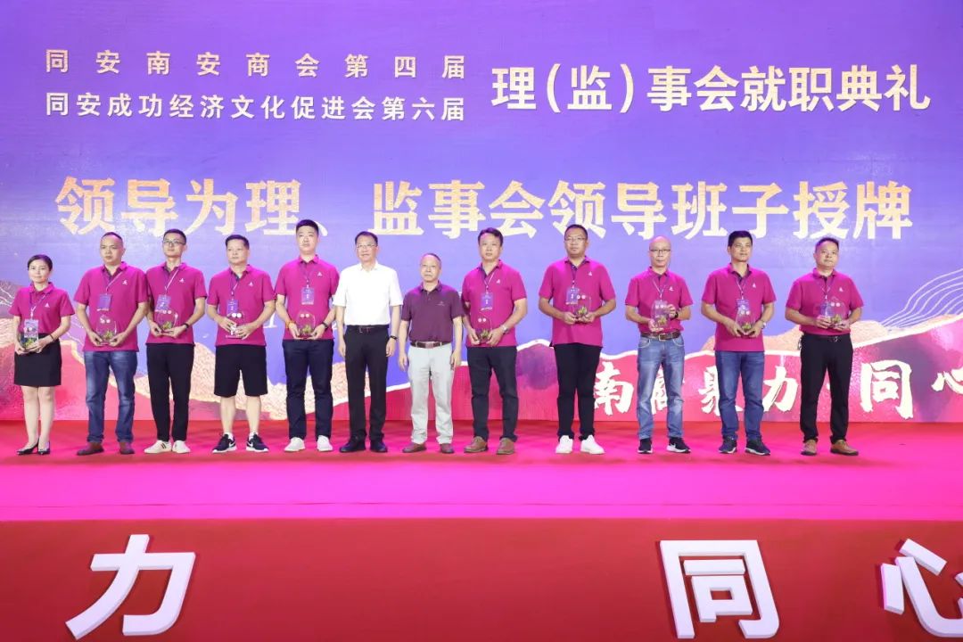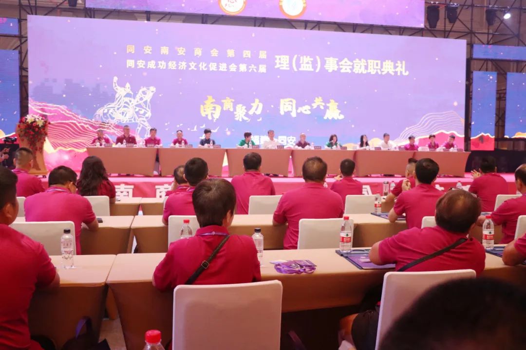 就职典礼前,还举行了同安南安商会第四届、同安成功经济文化促进会第六届第一次会员大会。会议审议并通过了工作报告、财务报告、两会章程(修改案)、会费标准及管理办法等内容,选举了第四届理事会、监事会成员及领导班子,讨论并通过荣(名)誉、顾问、理事会职能部门职务名单
