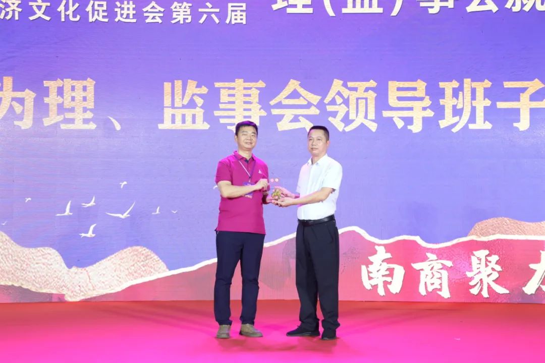 ▲中共南安市委统战部副部长、市工商联党组书记、常务副主席王卫东,同安区工商联党组书记蔡福德为理事、监事授牌