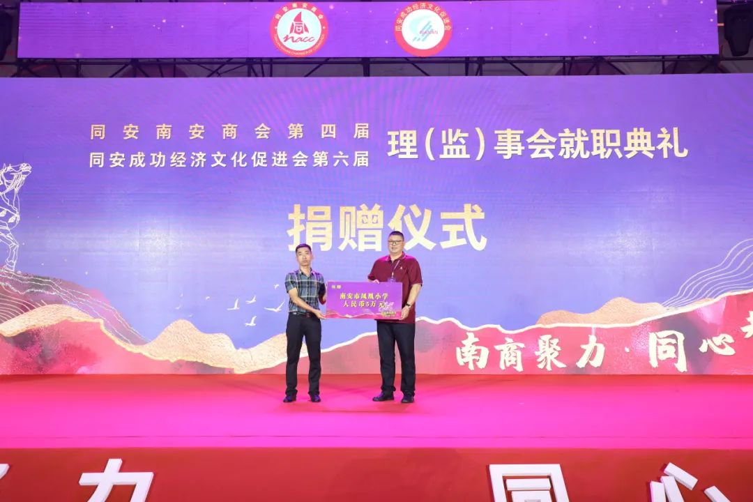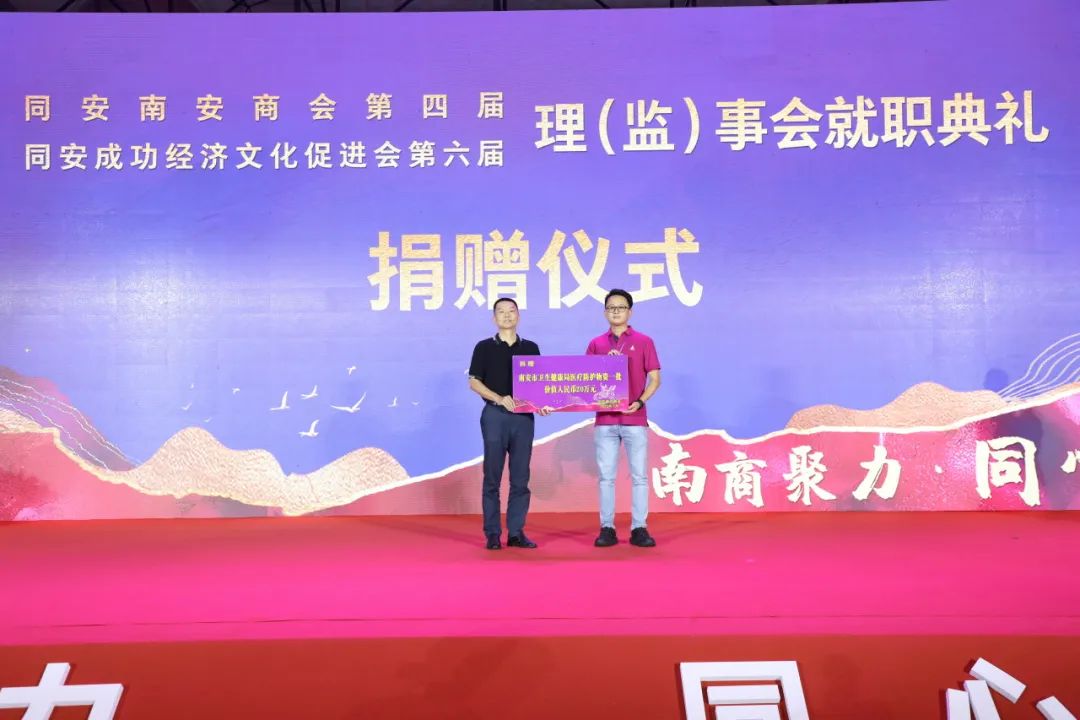 为了支持同安、南安两地的教育卫生事业,同安南安商会向南安市凤凰小学捐赠人民币5万元,用于电教室建设;向同安区教育事业促进会捐赠人民币15万元;向南安市卫生健康局捐赠一批价值20万元的医疗防护物资。