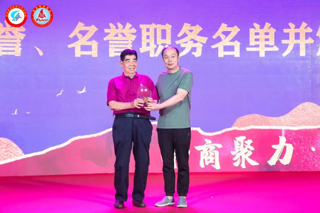 ▲会长刘炳杰为名誉会长呈送聘书