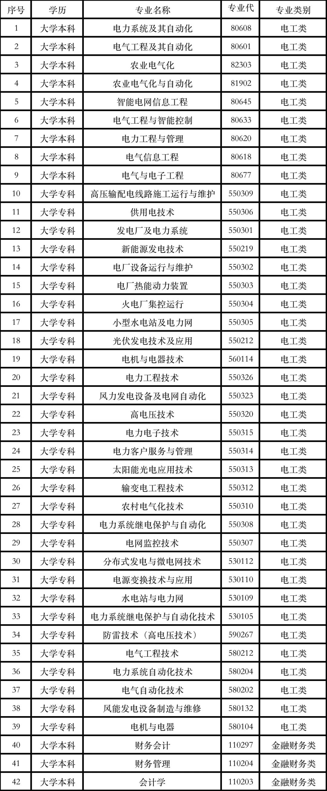 电工类专业大学专科及以上学历,财务类专业大学本科学历,具有军队服役经历者优先考虑,以上学历和专业以全日制最高学历、主修专业为准,具体如下。