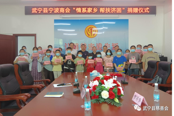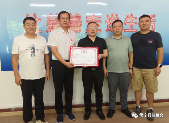 8月11日,武宁县宁波商会会长李怀恩、监事长曾祥华、执行会长梅庆到武宁县慈善会捐赠“情系家乡·帮扶济困”善款。