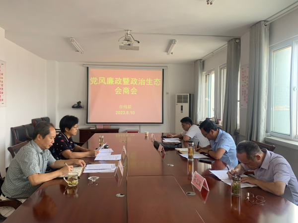 8月10日下午,市残联党组与驻民政局纪检组召开党风廉政暨政治生态会商会。市残联党组书记徐淮萍主持会议,市残联党组成员、驻市民政局纪检组组长及成员参加会议。