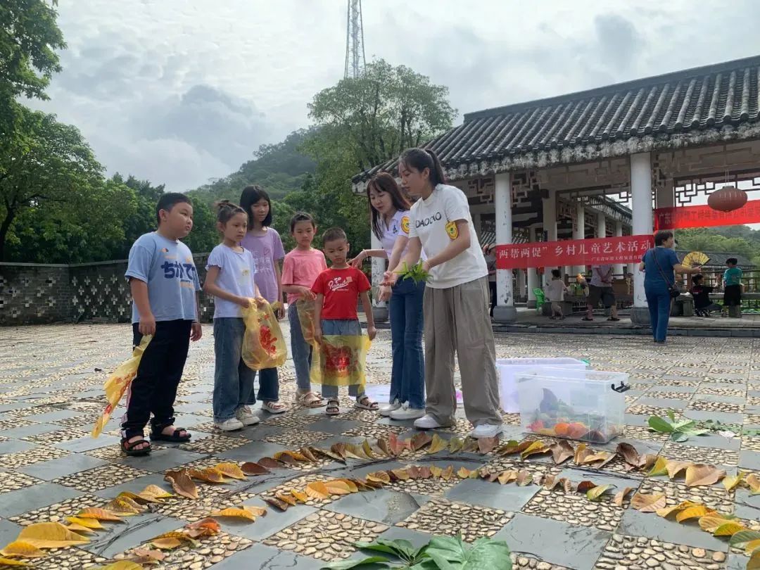 环装公司志愿者团队携普宁市11名乡村儿童前往普宁市莲花山公园开展“两帮两促”乡村儿童艺术活动——大地艺术和拓印。从一片片泛黄的落叶,到富有创意的大地艺术,青年志愿者们带着孩子们共拾树叶、花朵,在制作作品的同时向他们讲授生态环保理念,有效锻炼了孩子们的动手能力,亦在孩子们的心底埋下保护环境的种子。