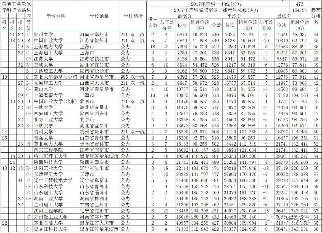 B档985:华南理工大学,13分,3.161‰;211:中国矿业大学(北京),0分,69.857‰;公办:哈尔滨理工大学,18分,118.97‰。