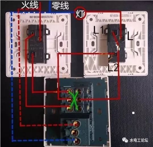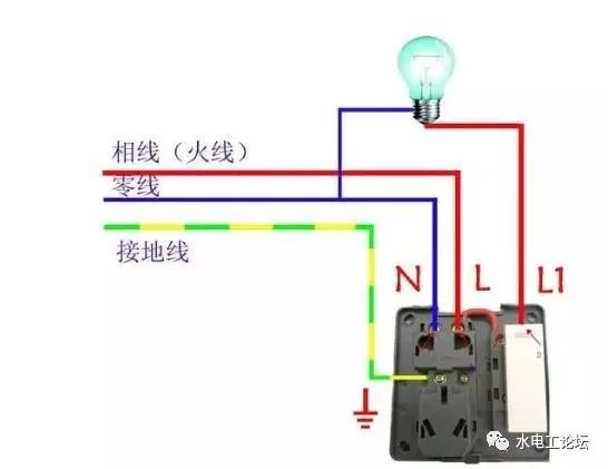 如上图所示,L线将插座与开关相连并接入火线,开关L1接入灯一端,零线接入插座N处和灯另一端,这里开关起到的是控制灯的作用,这个可以减少安装灯开关的数量,用起来也比较方便。