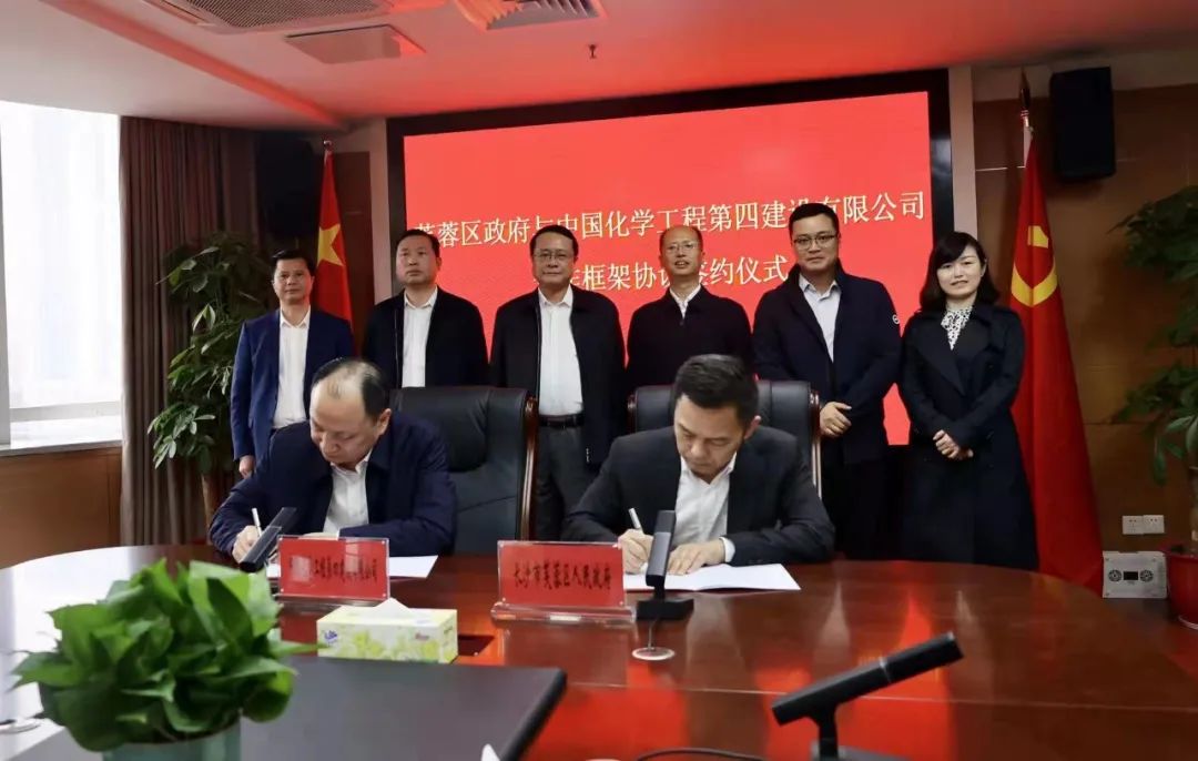 双方现场签署《芙蓉区人民政府与中国化学工程第四建设有限公司合作框架协议》。根据协议,双方将整合各自优势资源,共同在芙蓉区开展公司长沙总部、国有企业混合所有制改革、片区开发、城市更新及浏阳河经济带建设、重大公共基础设施建设及提质改造、生态保护和环境治理等领域合作。