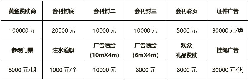 标准展位 (3m×3m) | 8000元/个 | 山东省铸协 会员指导价 | 4000元/个 |