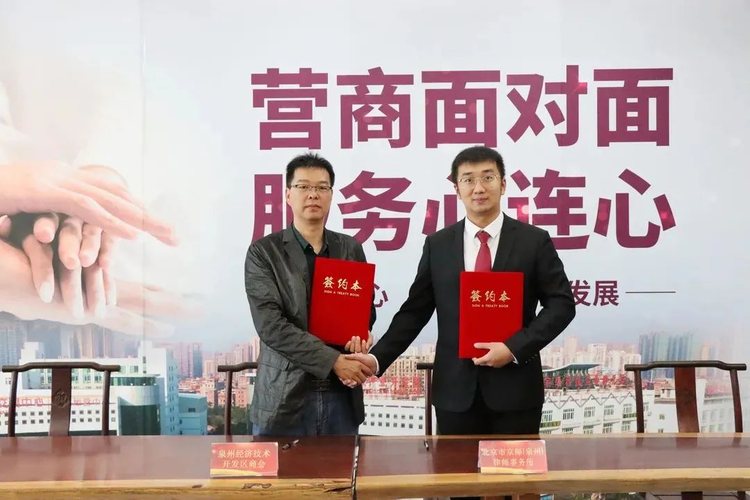 新的时代呼唤新的担当新的作为,签约仪式在热烈的掌声中结束。未来,京师泉州律所将充分发挥自身法律服务的优势,与泉州经济技术开发区商会携手同行,更好地为泉州经济技术开发区商会及其会员企业提供优质、高效、专业的法律服务,助力泉州经济技术开发区商会质量品牌建设,助推商会、企业经济高质量发展!