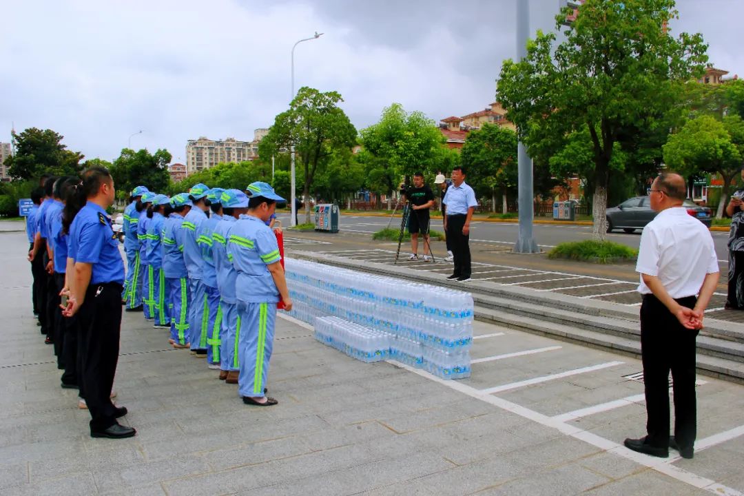 王会长向辛勤工作的城管一线工作人员致以亲切的慰问和崇高的敬意,现场向城管系统一线工作人员捐赠500箱饮用水,并再三叮嘱一线工作人员,做好防暑降温工作,把安全和健康放在第一位。