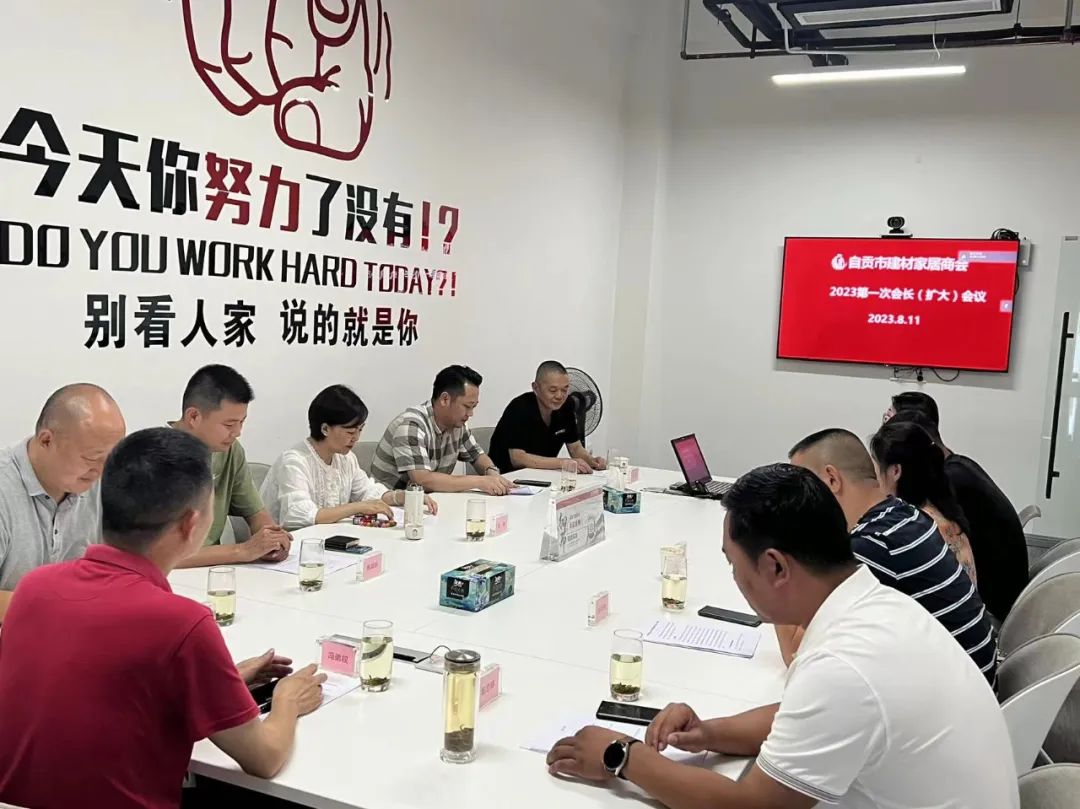 2023年8月11日自贡市建材家居商会2023第一次会长(扩大)会议在自贡马吃水铂斯国际3A英祥商管公司视频会议室隆重举行。
