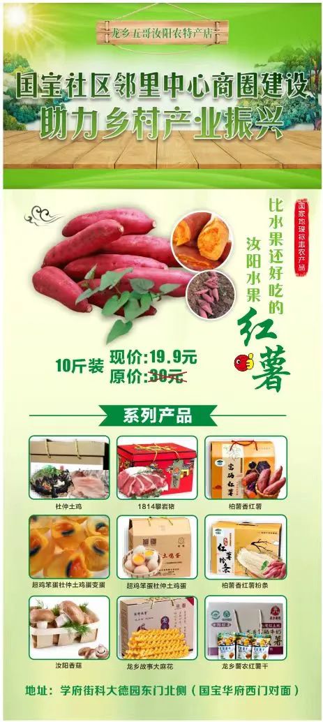 比水果还好吃的汝阳水果红薯,杜仲土鸡,1814攀岩猪,柏薯香红薯粉条,汝阳香菇,龙乡故事大麻花,龙乡薯农红薯干。