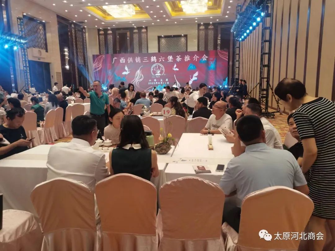 余人参加了推介会。太原市河北商会领导张云山、宋海军、李江华、宋蜂、刘志标、刘金勇、侯立飞、杨学民、孙桂娜、徐恩田、杨万丰应邀出席。太原市商务局、山西省茶业商会、太原市茶叶研究会、梧州茶厂有关领导分别发表了致辞和推介,大家品尝了三鹤六堡茶的精品茶韵,观看了精彩的文艺表演,并进行了抽奖活动。通过品茶和推介使大家真正了解了