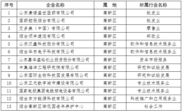 近期,全市召开市场主体培育发展暨服务业高质量发展大会,会上印发了《全市现代服务业百企做大做强入库培育企业名单》。我区山东汉鑫科技股份有限公司、中集海洋工程研究院有限公司等13家企业成功入选,入选数量列全市第3位。