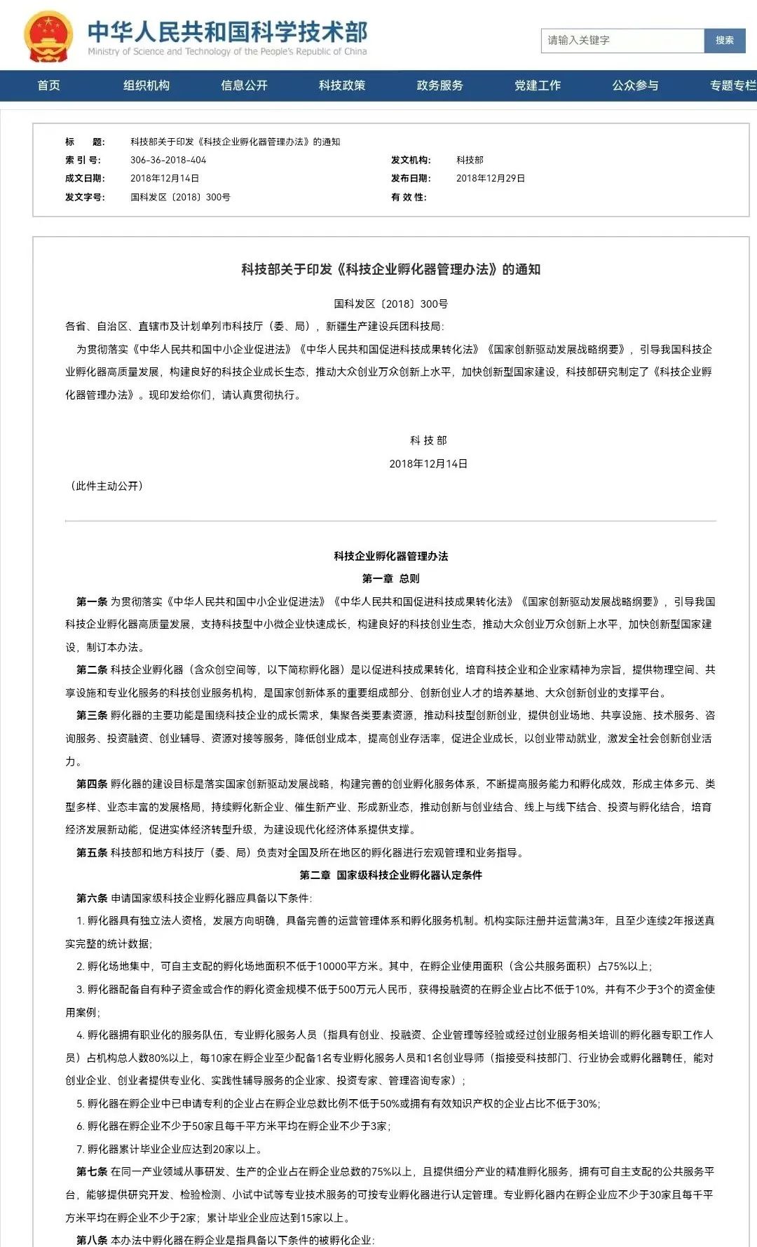 科技部关于印发《科技企业孵化器管理办法》的通知