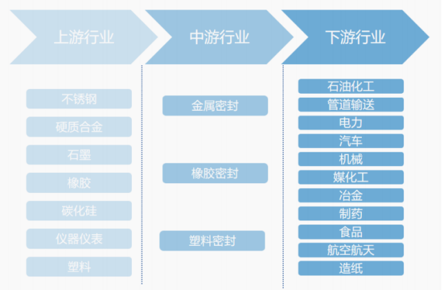 机械密封是重要的工业基础件,广泛运用于石油化工、管道运输、电力、汽车、机械等多个行业。机械密封产品主要用于解决在高温、高压、高速及高危介质下转动设备运转时的泄漏问题,产品性能直接影响下游领域客户项目的安全、环保、节能及长周期运行。机械密封行业的上游行业是不锈钢、硬质合金、石墨、橡胶、碳化硅、仪器仪表等行业,机械密封的下游行业为装备制造业及石油化工、煤化工等行业。