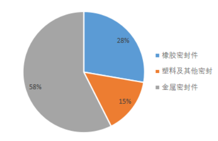 金属密封为我国密封行业主流。金属密封制造是指以金属为原料制作的密封件。根据前瞻产业研究院数据,在密封件制造行业中,金属密封占主导位置,2021 年市场份额达 57.7%。其次市场份额排名依次为橡胶密封件和塑料及其他密封,分别占 27.8%和 14.5%。近来密封产品需求逐渐高端化,橡胶密封件因具有多种优势,需求逐步提高。