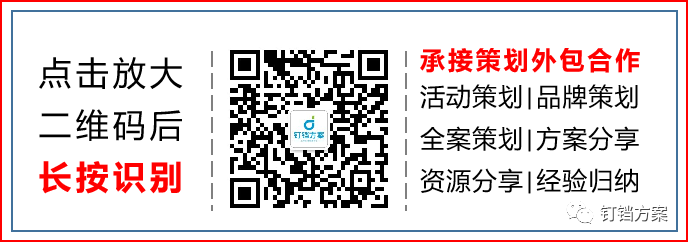 各位钉友,所有方案是从全网数万份方案严选出精品,严选初衷是希望所筛选方案对策划人有直接借鉴和灵感启发作用,严选出方案让策划人节省时间提高效率,让策划汪哪怕早一个小时下班,也就起到我们分享的价值了,作为一路走来的策划汪,会一直保持初心分享有价值的内容和钉友们一起前进,同时也希望你的转发和推荐能帮助到身边更多有需要的盆友们~