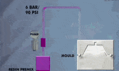 RTM的基本原理是在设计好的模具中,预先放入经合理设计、剪裁或经机械化预成形的增强材料。模具需有周边密封和紧固,并保证树脂流动顺畅;闭模后注入定量树脂,待树脂固化后即可脱模得到所期望产品。