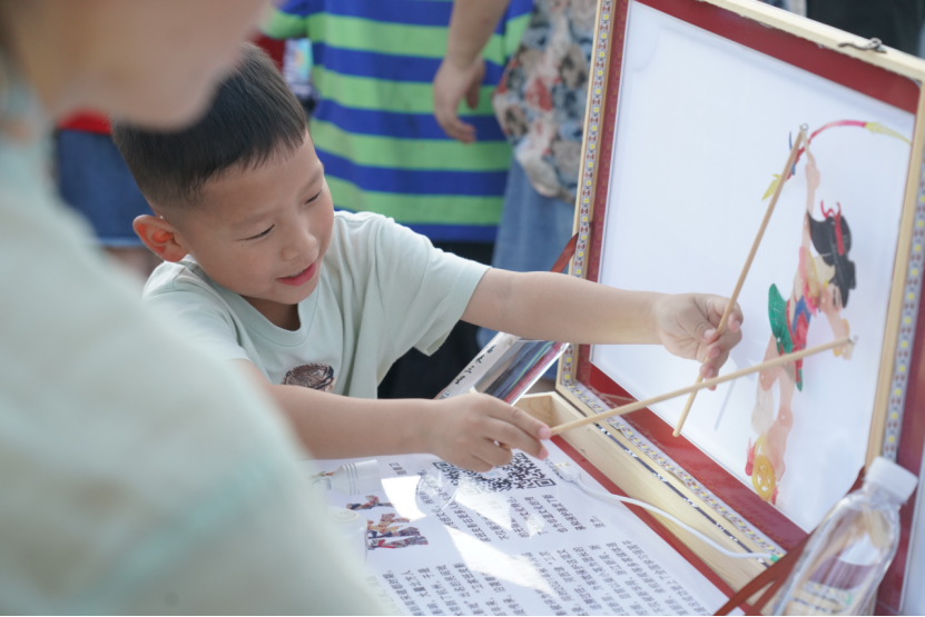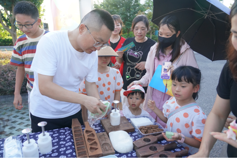 赛场周围,还有塘栖非遗文化展示——浙派盆景、米塑、塘栖糕板、皮影戏,还有趣味活动——投壶、眼疾手快、踢毽子、保龄球等活动。村民积极参与,一边体验塘栖非遗的魅力,一边享受游园的乐趣。