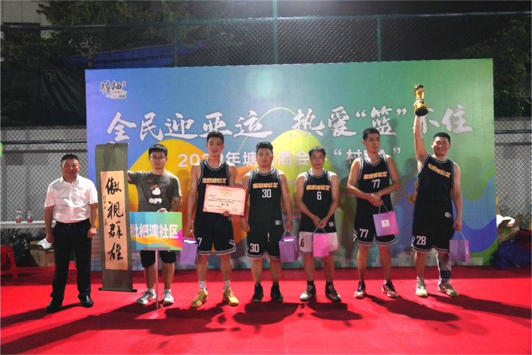 本次比赛,来自塘栖镇29个村社以及机关、消防、公安等单位的36支篮球队共180名球员,进行3V3大赛与三分球大赛的争夺。赛场上,这些由村民、退役军人、返乡大学生、企业务工人员等乡村群体组成的球员们一展身手,用激情点燃夏日活力,展现亚运精神。塘栖商会党支部书记唐杏根和秘书长曹永强分别参与了开幕式及颁奖典礼。