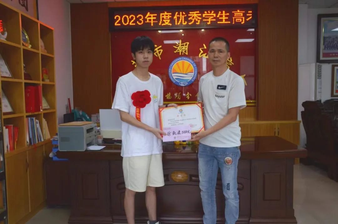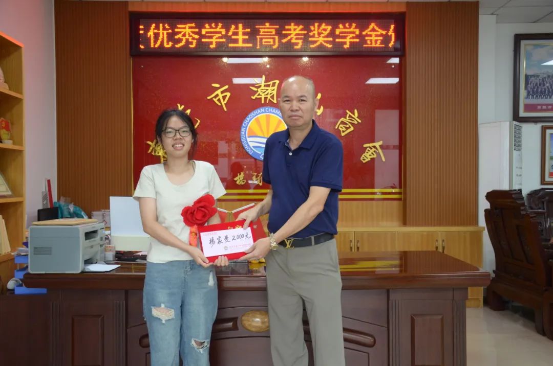 荣获首届高考奖学金的优秀学生代表彭洲雄同学讲话:首先感谢商会在这里为我们潮汕学子举办高考奖学金颁奖活动。与商会同样,我的家庭也很重视我们的学习,爸妈眼中,教育始终是排在第一位的,纵使是暂时借钱,也要读上最好的学校,在我小学时候,爸爸就会买黄冈小状元来充实我的假期。谢谢爷爷奶奶、爸妈和亲戚们在我小学、中学、大学学习路上的辛勤付出。我也想与同学们分享两个经验;第一,找准你的位置。首先是找准你在社会上的位置,其次找准学习职业知识的位置,职业没有高低对错,而是不同的职业意味着要不同的规划学习掌握知识本领。按部就班完成老师安排的学习、作业,我们就能或快或慢的进步。所以在课外,你要主观能动的规划自已的路径,学习更多相应的知识。第二,找到你的压舱石,希望你能找到你所热爱的东西,这个东西无论在你高潮还是低谷都会源源不断的给你力量,不管是某项运动、艺术、学科还是什么,都希望你能找到他。最后,再次感谢商会能如此重视教育,激励一届又一届的潮汕学子奋发图强。也祝商会办的越来越成功,越办越好!