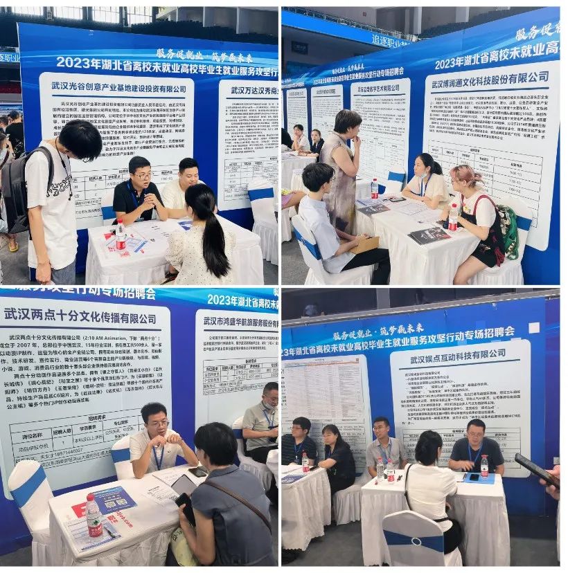 8月10日上午,由联合省教育厅、省财政厅、省文旅厅、省国资委、省工商联共同举办湖北省离校未就业高校毕业生就业服务攻坚行动专场招聘会在武汉市洪山体育馆举行,光谷创意产业基地携园区企业两点十分、博润通、漫动者及娱点互动等十余家企业参与,现场发布就业岗位42个,人才需求量达120人,收到简历超过200份。