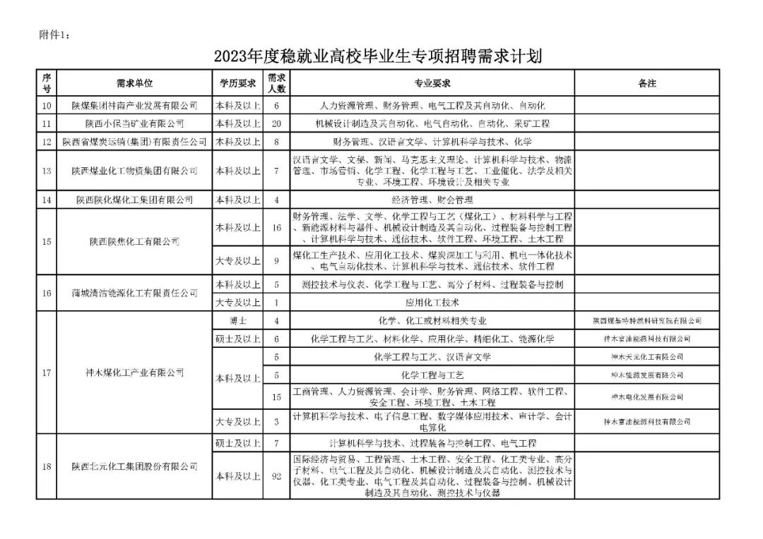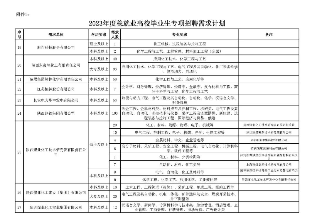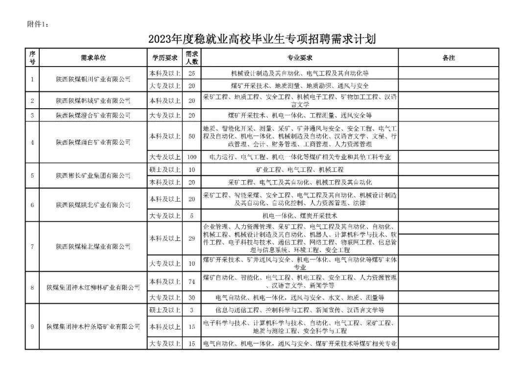 陕煤集团响应省委、省政府及省国资委稳就业工作部署,积极拓展就业岗位,结合企业需求,计划增补1275人。现将需求计划公布如下: