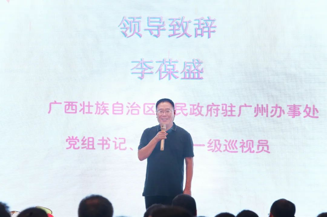 广西壮族自治区人民政府驻广州办事处党组书记、主任、一级巡视员李葆盛、广西驻广办合作交流处处长周土智、广西人社厅驻珠海工作站站长、驻粤团工委副书记刘丽、广东省鹤山市人民政府副市长李海权、鹤山市人社局局长陈自力、鹤山市文化广电旅游体育局副局长苏子良、鹤山市总工会副主席吕丽群、广东省江门市广西商会会长梁伟平、广东省广西商会五金铜材卫浴专委会会长黄宏亮、秘书长韦昊、我会执行会长兼秘书长黄江波等领导,嘉宾和在粤务工子女约100多人参加了本次活动。